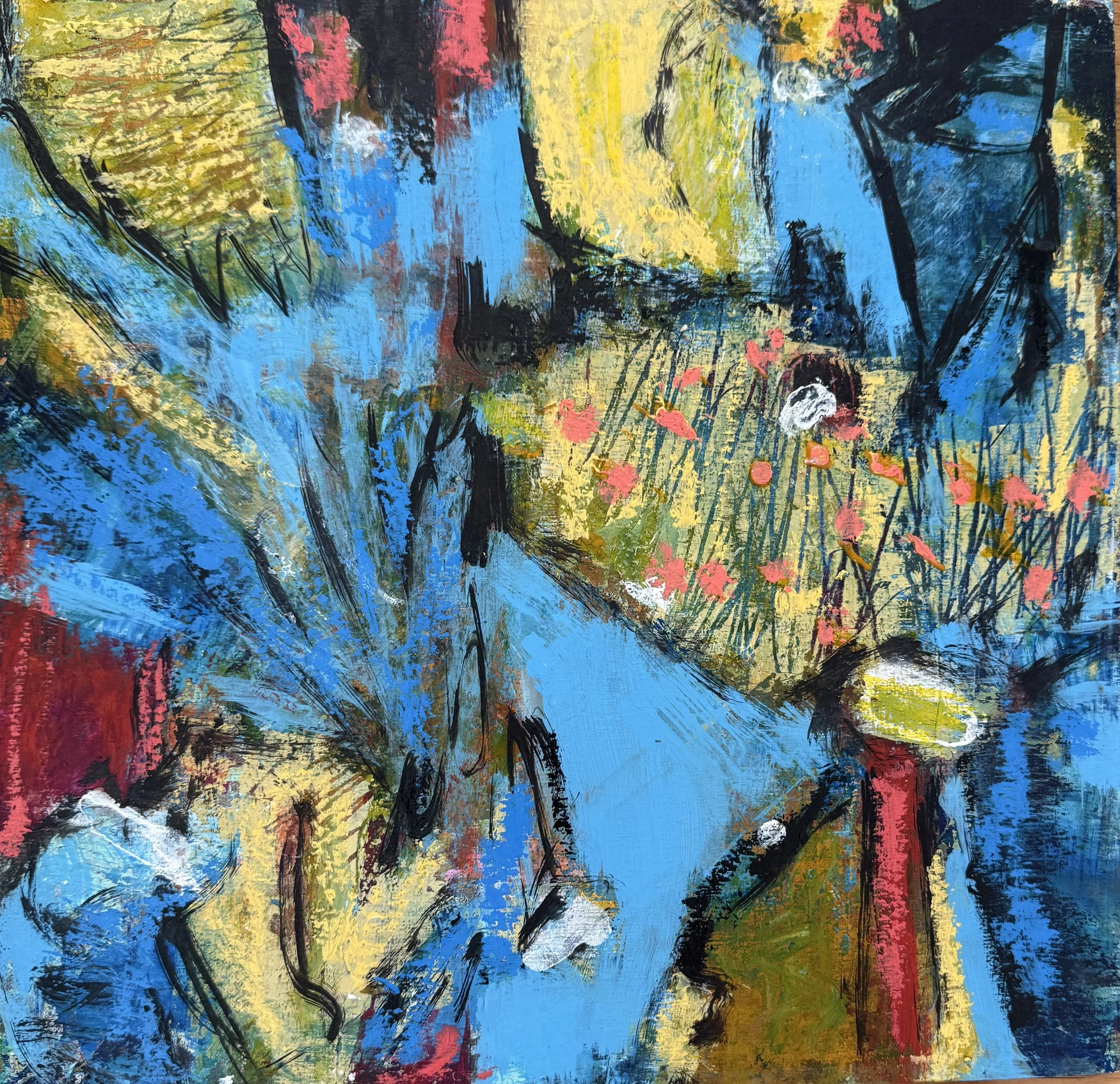 Intermezzo is a new series of abstract paintings that mark a shift in my creative process — a transition toward painting with more emotion, presence, and purpose. Each piece was created on 12x12” panel in acrylic, using layered color, bold mark-making, and intuitive composition.